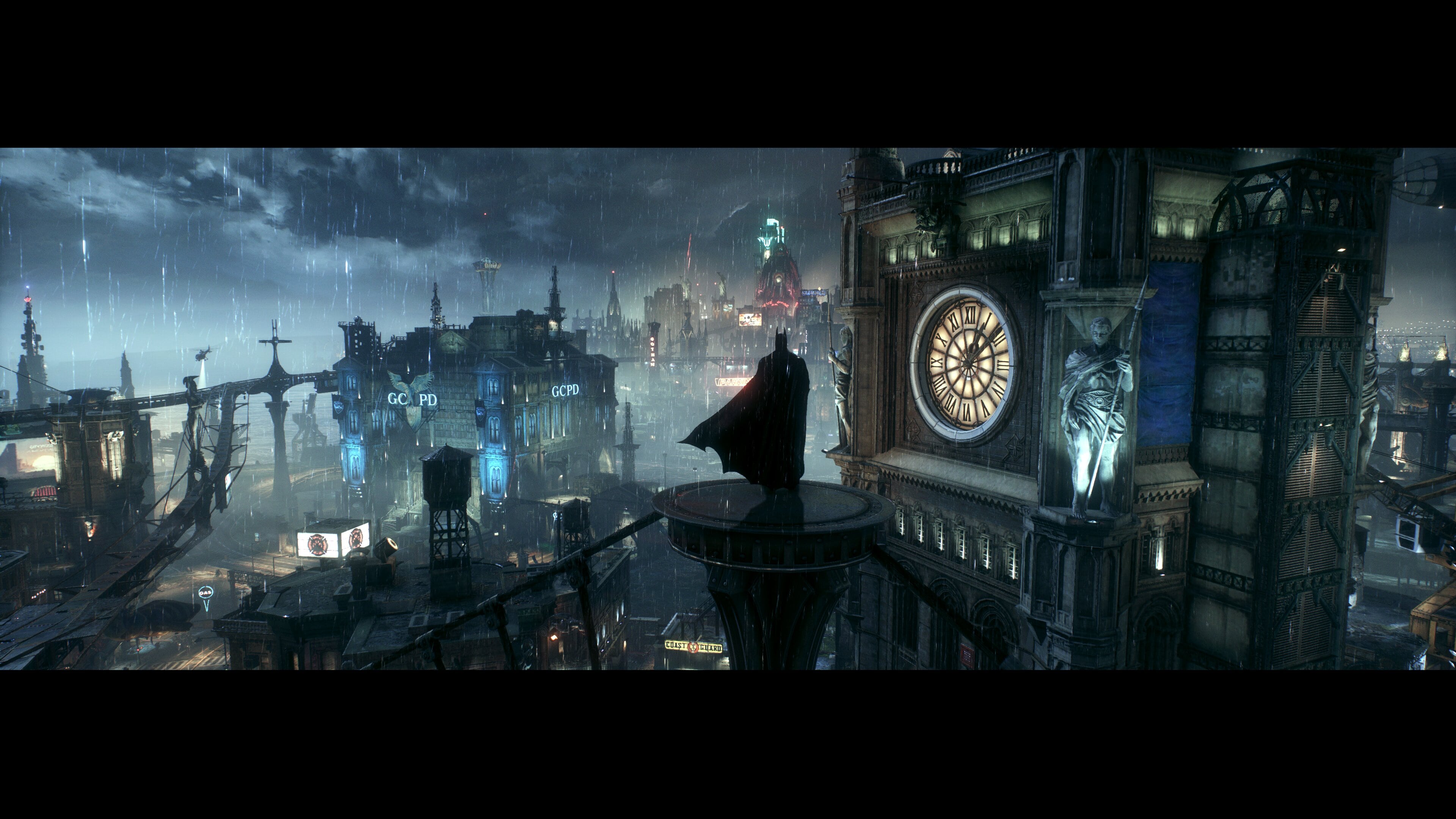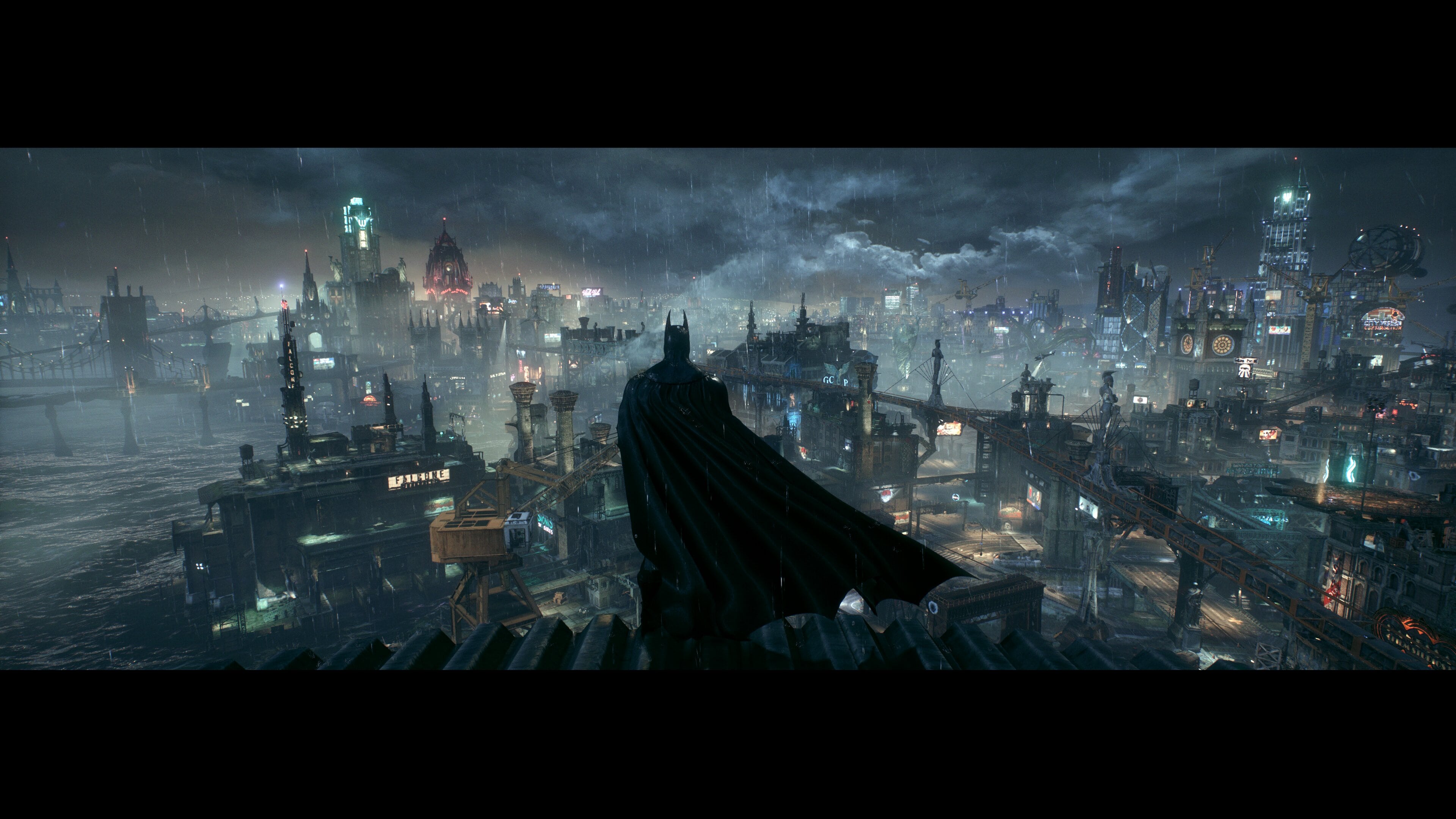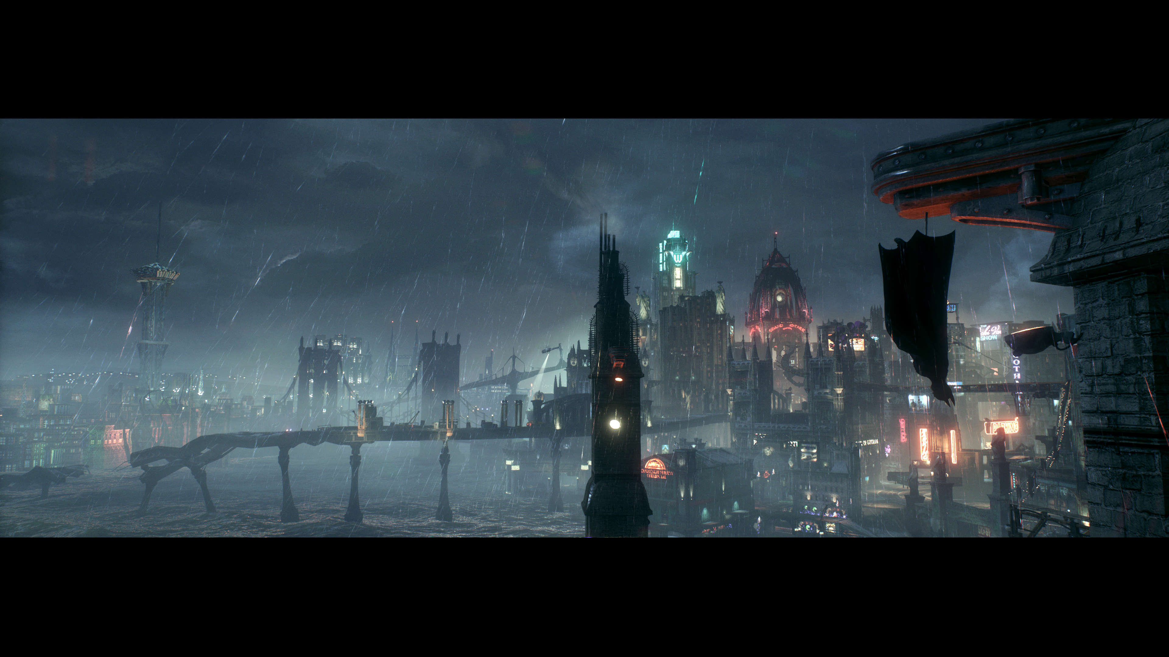 Une vue de Miagani Island, et d'un des ponts détruits qui menait à Arkham City.