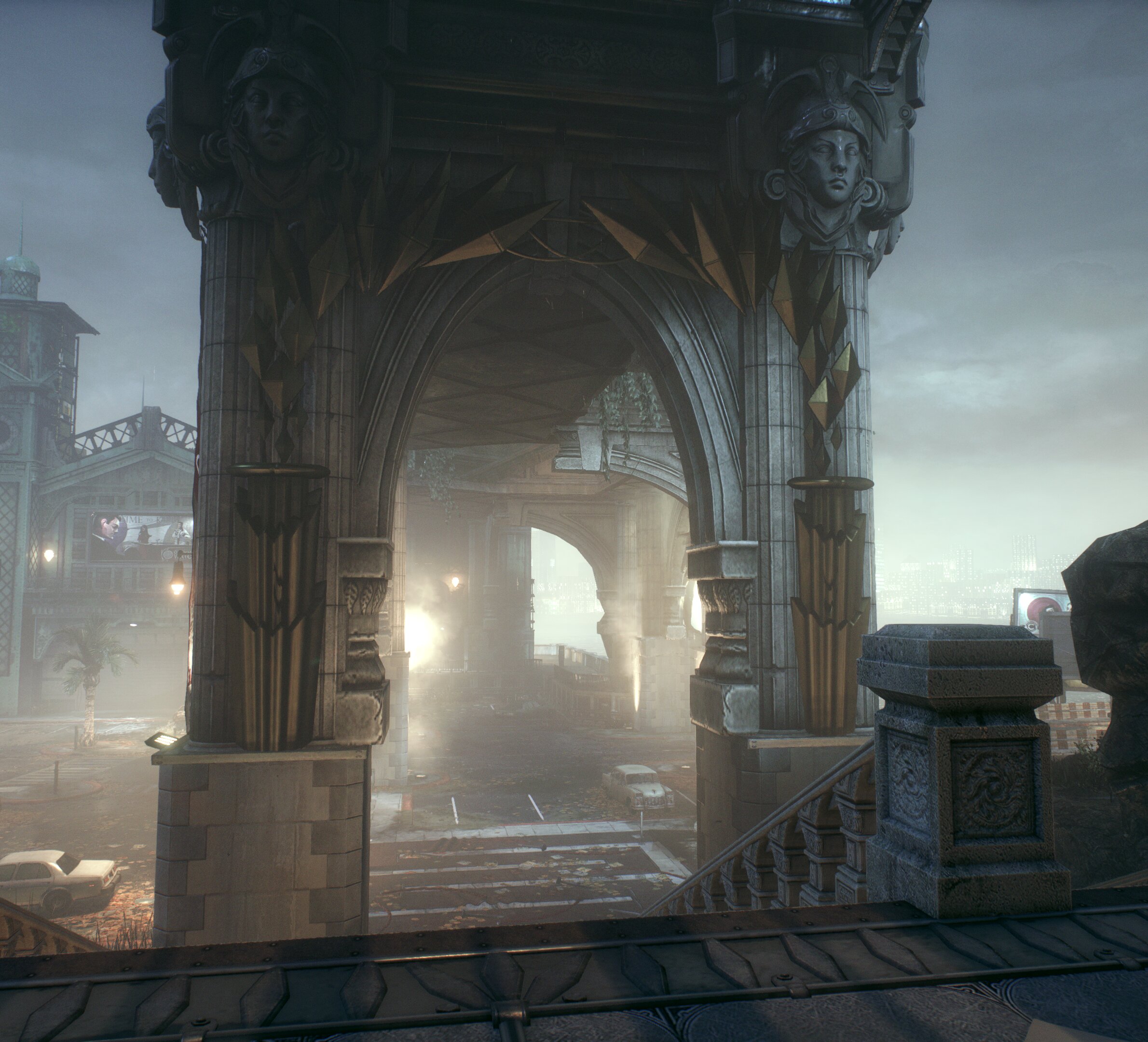 Une des entrées des studios Panessa. On peut y voir ce qui est une des grandes réussites du jeu : le souci du détail et le travail sur l'architecture.