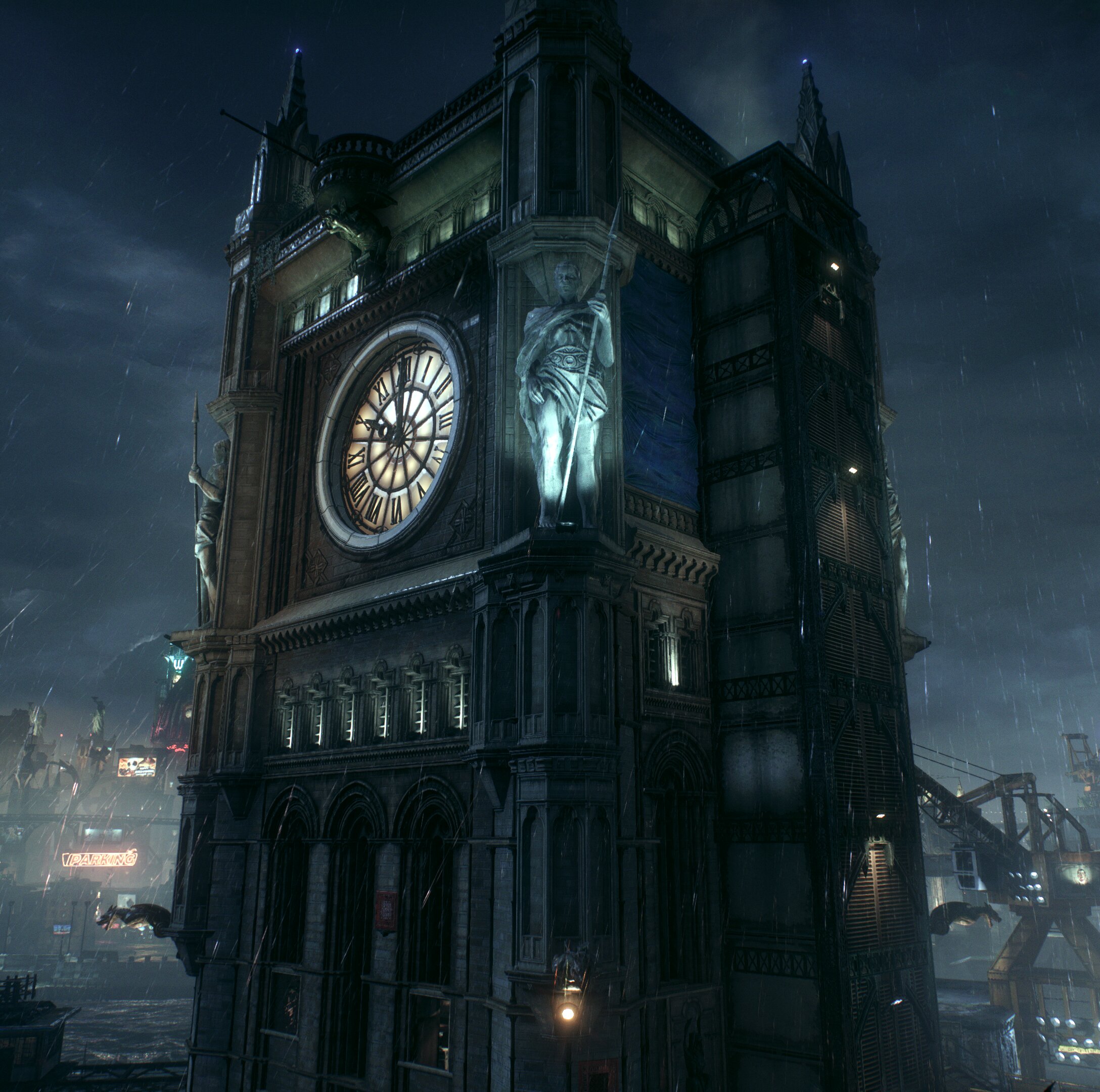 Bleake Island est l'île sur laquelle on démarre l'aventure. On voit ici deux de ses sites les plus importants : le GCPD et la tour de l'horloge.