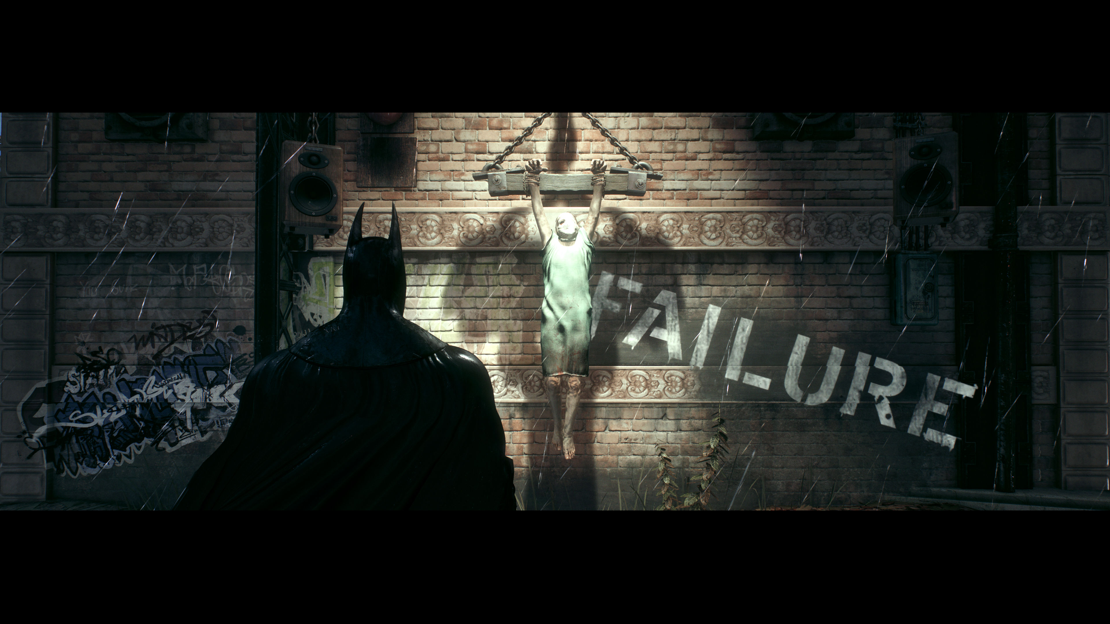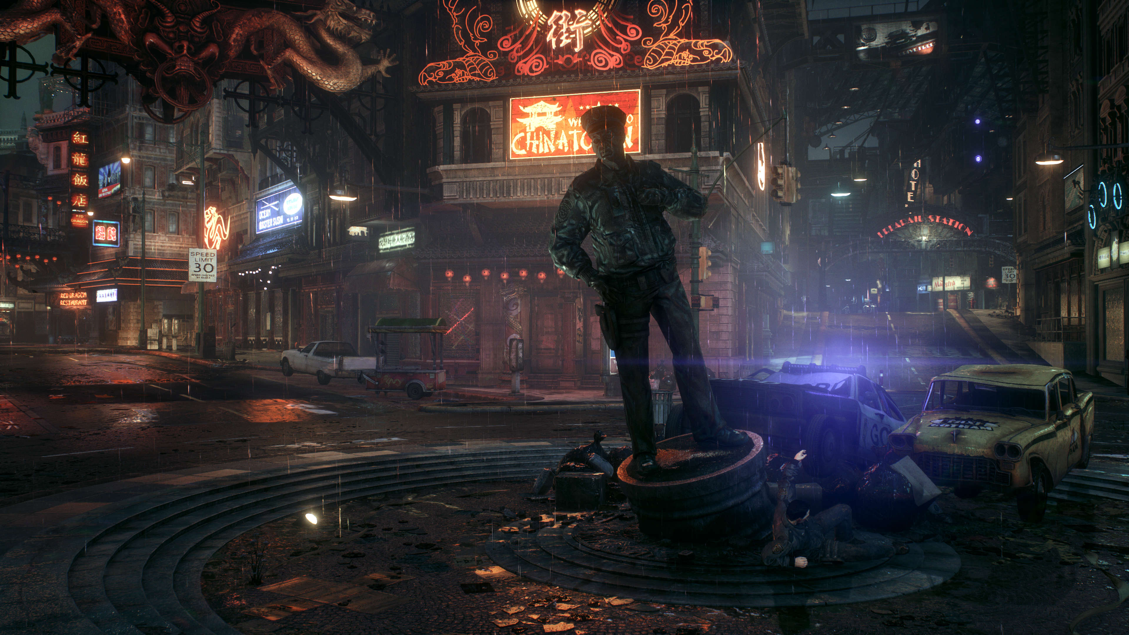 Cette statue représente un policier de Gotham. Elle disparait dès le début du jeu, détruite par une voiture blindée.